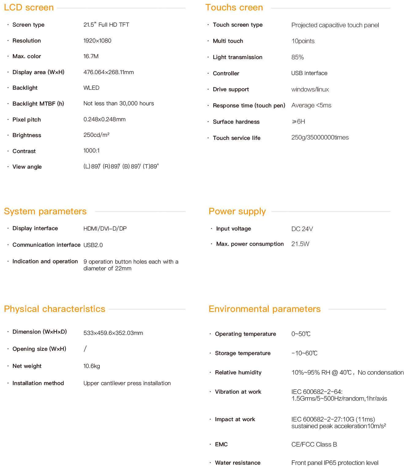 21.5-Inch Cantilever Touch Panel