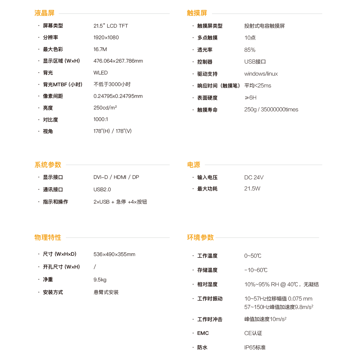 產(chǎn)品咨詢 > PDX系列下懸臂觸控面板 > 21.5寸下懸臂式觸控面板 > PD-6121