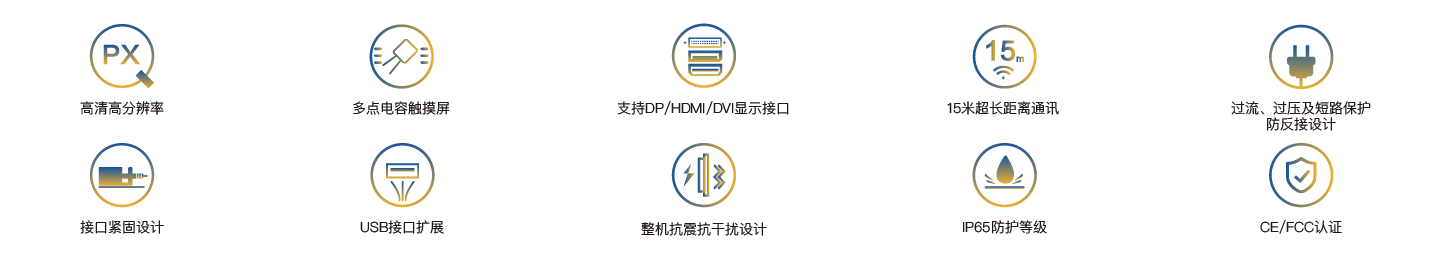 NPD-154是一款嵌入式超薄型工業(yè)觸控面板,配備15寸分辨率1024×768的高清液晶顯示屏、投射式多點(diǎn)電容觸摸屏,支持HDMI、DVI、DP三種信號(hào)傳輸接口和多個(gè)USB接口擴(kuò)展,PC與觸控面板最遠(yuǎn)通訊距離可達(dá)15米,整機(jī)DC24V供電,前面板IP65防護(hù)等級(jí),接口全部采用緊固設(shè)計(jì),且通過(guò)CE/FCC認(rèn)證,可適用于嚴(yán)苛的人機(jī)交互工業(yè)現(xiàn)場(chǎng)。