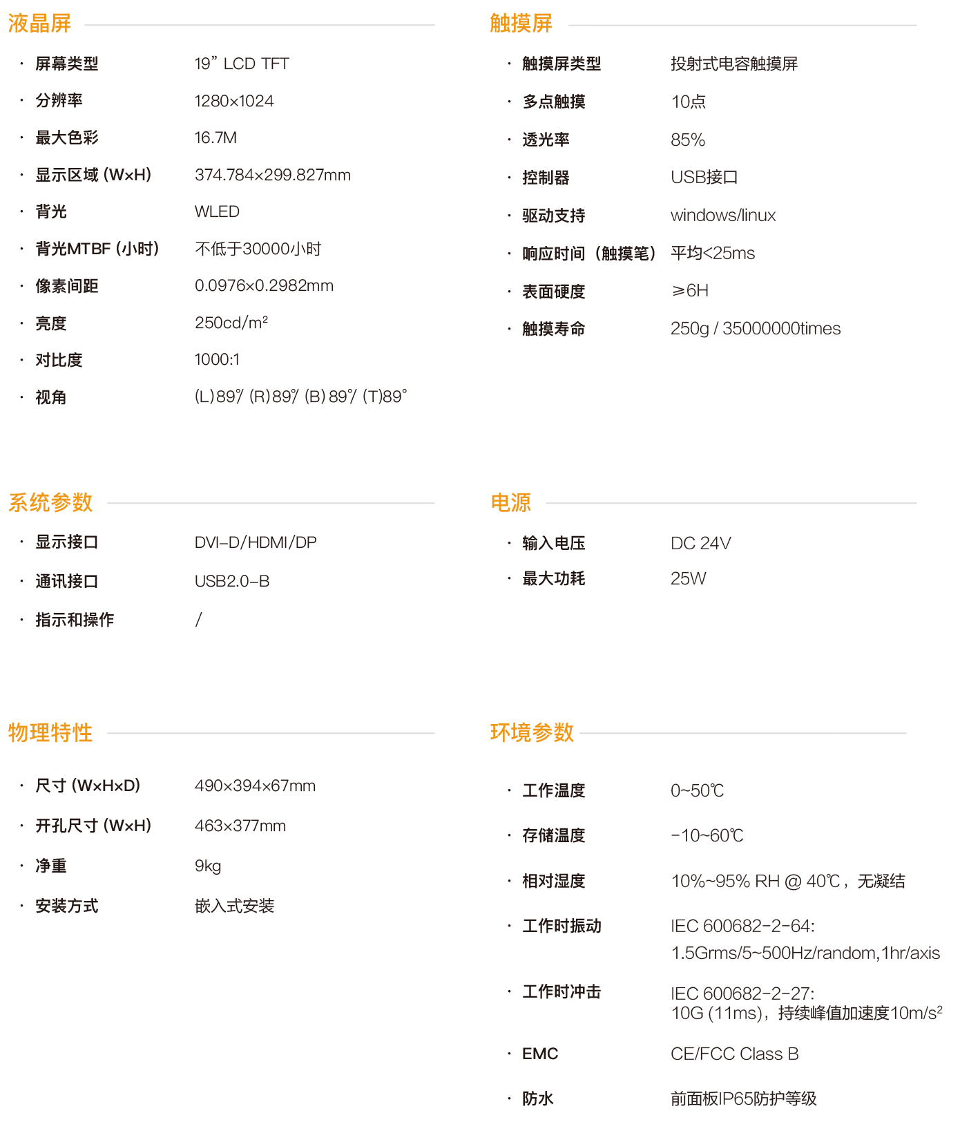 NPD-194是一款嵌入式超薄型工業(yè)觸控面板,配備19寸分辨率1920×1024的高清液晶顯示屏、投射式多點電容觸摸屏,支持HDMI、DVI、DP三種信號傳輸接口和多個USB接口擴展,PC與觸控面板最遠通訊距離可達15米,整機DC24V供電,前面板IP65防護等級,接口全部采用緊固設(shè)計,且通過CE/FCC認證,可適用于嚴苛的人機交互工業(yè)現(xiàn)場。