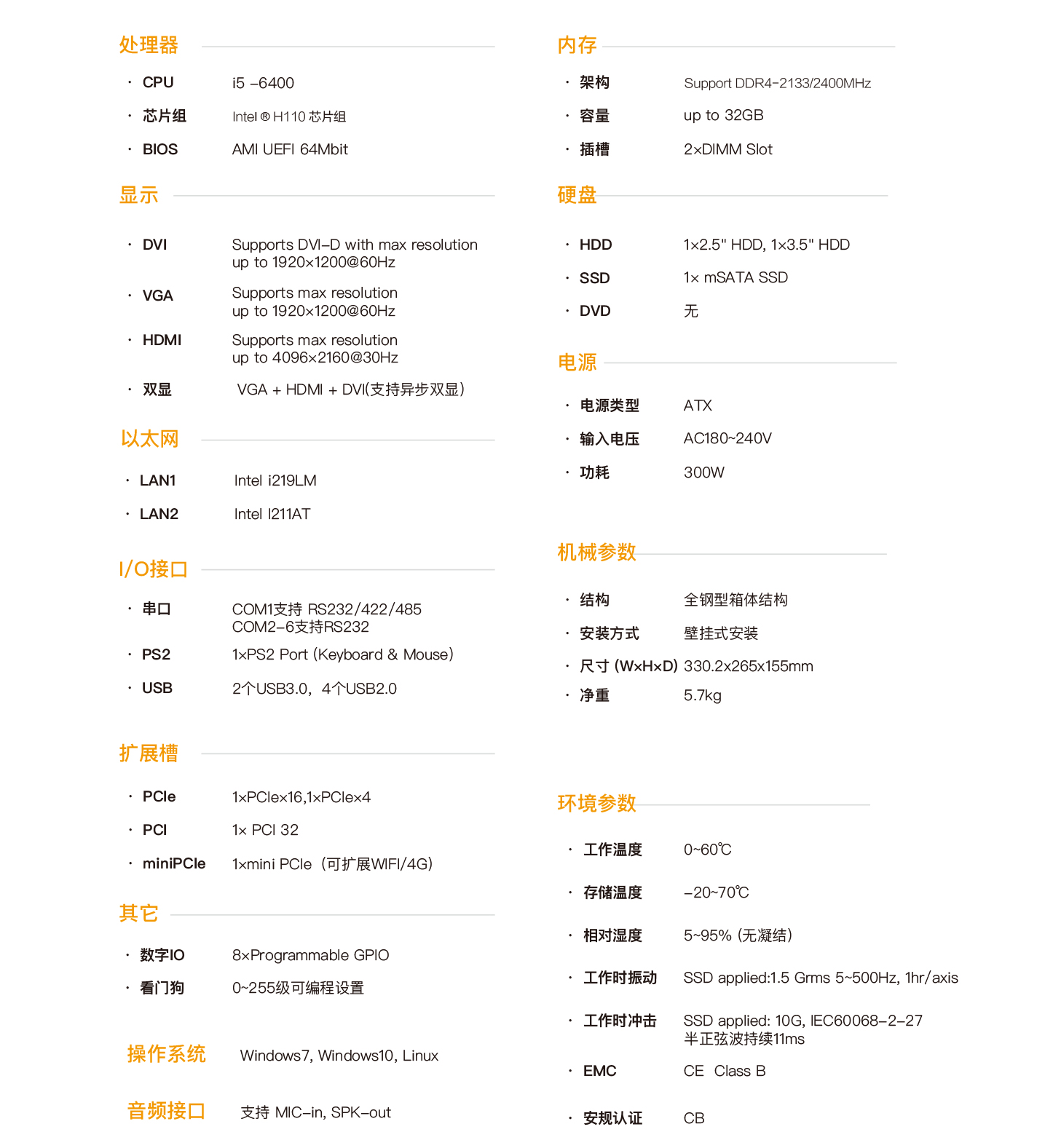 產(chǎn)品詳細規(guī)格(IPC-2102工業(yè)計算機)